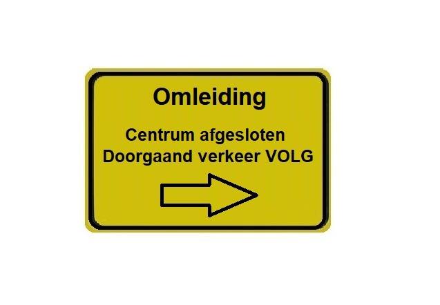ODV-L OMLEIDING CENTRUM AFGESLOTEN, DOORGAANDVERKEER VOLG LINKSAF