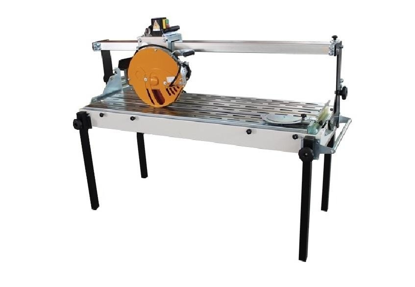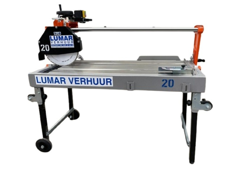 Tafelsteenzaag of tegelzaag met waterkoeling voor het stofvrij zagen en in verstekzagen van natuursteen, beton-, grind- en keramische tegels e.t.c.